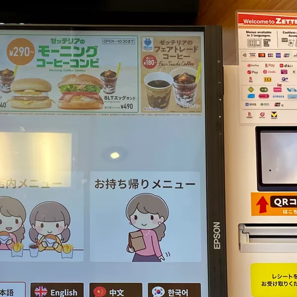 絶品バーガーを気軽に楽しめるカフェテリア、ゼッテリア。戸田公園西口から徒歩すぐの場所にあり、一部の席には電源も。セルフオーダー端末で注文、番号が呼ばれたら受け取るスタイルです。