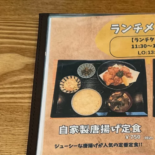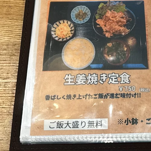 いただいたのは「自家製唐揚げ定食」と、翌日に「生姜焼き定食」。どちらも750円(税込)です。小鉢、味噌汁、ドリンク付きでこの価格。さらにご飯の大盛りも無料。この内容で750円は、ちょっと驚きの設定です。