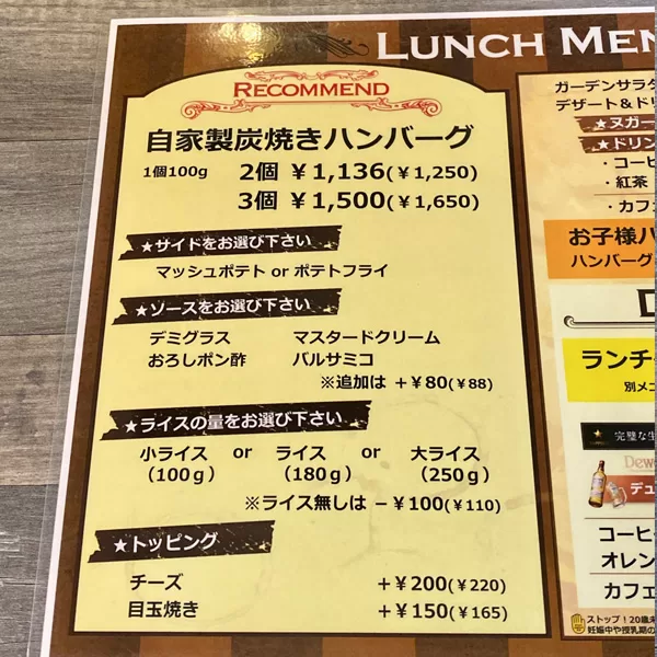 目玉焼きの下には、ごろっとジューシーな美味しいハンバーグが。見た目はぜひ訪れてのお楽しみにしてみてくださいね♪(2025/8)