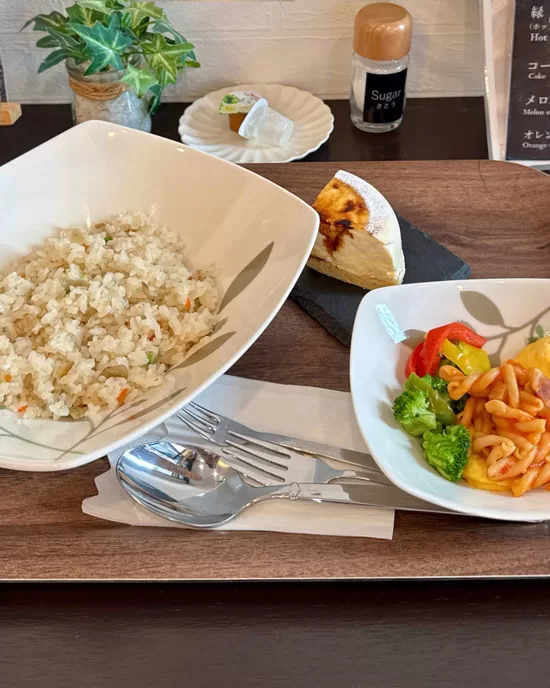 ランチには小鉢とケーキが付きます。ケーキは、さすがスイーツ店。ランチの延長というより、きちんと主役級。(2026/2)