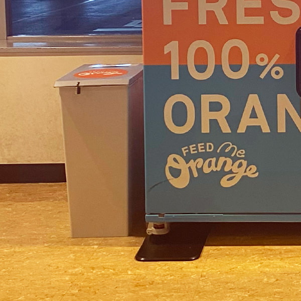 ララガーデン川口の方によると、メーカー側の希望もあってこの場所になったとの事。ちょっと勇気のいる自動販売機Feed ME Orange!、この場所なら人目を気にせずに搾りたてのオレンジジュースを飲むことが出来そう♪