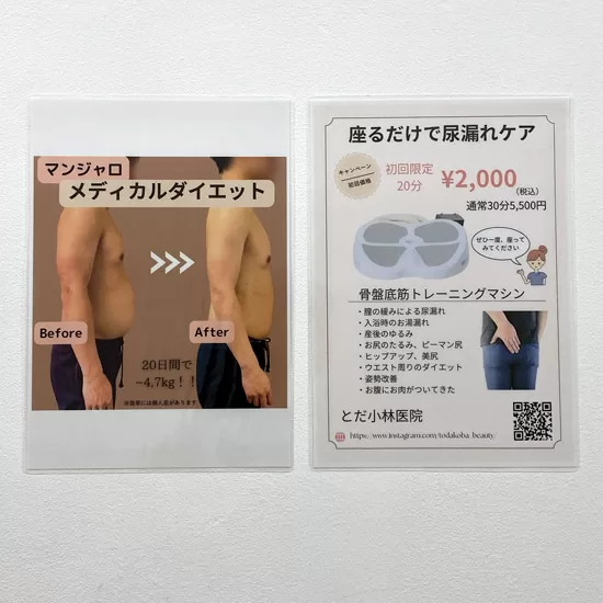 戸田市喜沢1丁目にある「とだ小林医院」さんでは、通常の整形外科・内科・リハビリテーション科に加え、自由診療として美容注射や医療脱毛なども提供しています(2025/2)