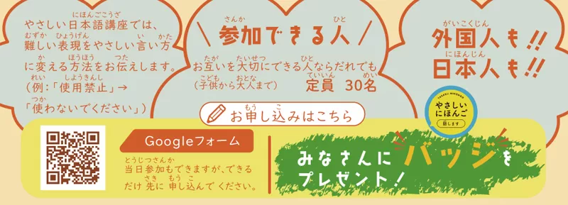 | やさしい日本語講座 ・こどばの交流タイム | 13:30~14:15 |