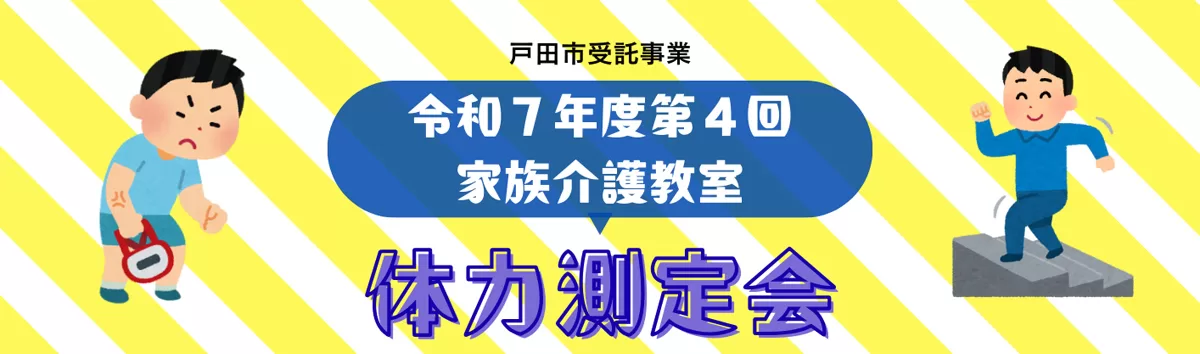 戸田市受託事業として、「令和7年度 第4回 家族介護教室 体力測定会」が開催されます。当日は、デイサービスで実際に取り組まれている運動を体験しながら、現在の体力を測定。結果に応じて、無理なく続けられる運動の紹介も行われます。