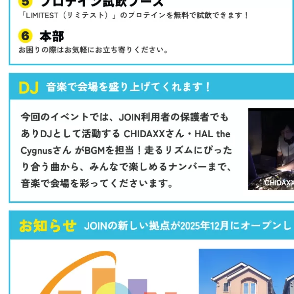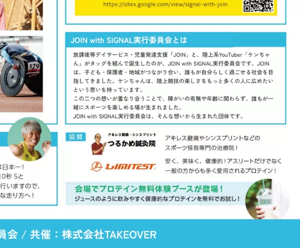 放課後等デイサービス「JOIN」と、陸上系YouTuber「ケンちゃん」がタッグを組んでお届けする “誰もが楽しめる”イベント!このイベントは「共生社会の実現」を目指し、障がいの有無や年齢に関係なく、すべての人が一緒に楽しめる【みんなが一つになれる場所】として開催します。