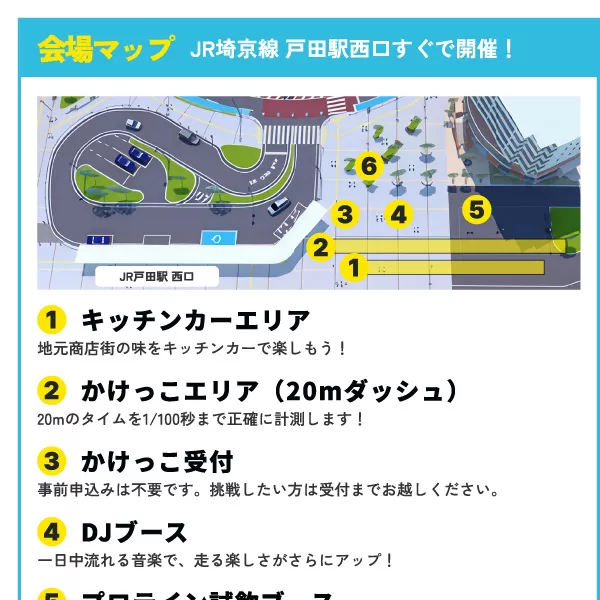 当日は、戸田駅前の広場が一日だけのスポーツフィールドに。走る楽しさと、地域のにぎわいを一緒に体感できるイベントになりそうです。