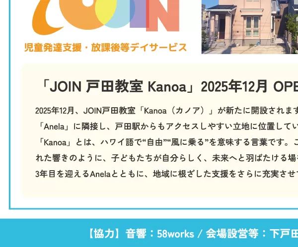 「ここが楽しい!」と思える空間、「一緒にいられること」が当たり前になる時間を、JOINとケンちゃんが本気で届けます。
