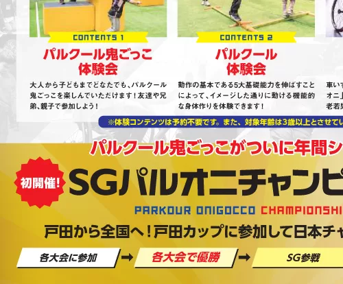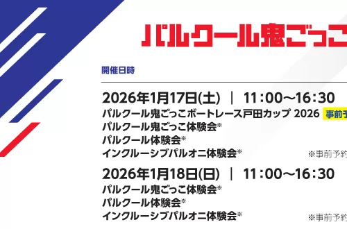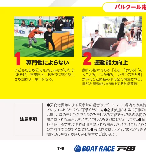 「パルクール鬼ごっこボートレース戸田カップ2026」のお申込みはパルオニ公式サイトにて受付。