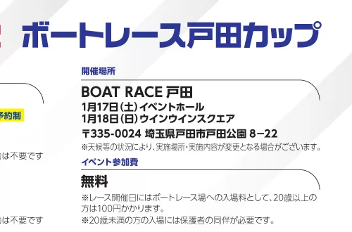 - 20歳以上の方はボートレース戸田への入場料100円がかかります。