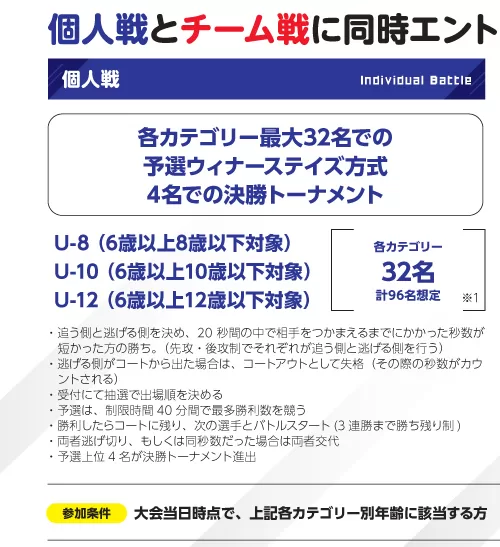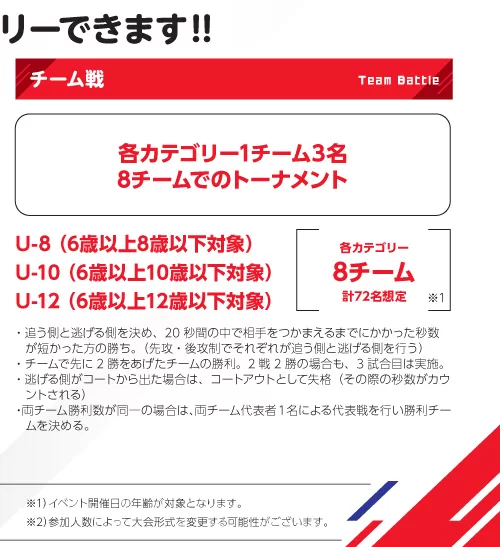各カテゴリー1チーム3名/8チームでのトーナメント