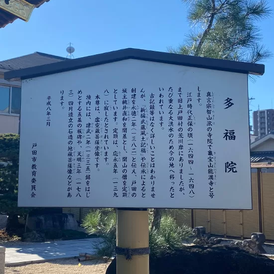 戸田市本町3丁目、戸田公園駅が最寄りの多福院さん。門をくぐった瞬間に空気が変わる不思議な静けさに包まれたお寺です。外の喧騒とはまるで別世界。手入れの行き届いた境内や堂宇の佇まいに、思わず足を止めたくなる落ち着きがあります。