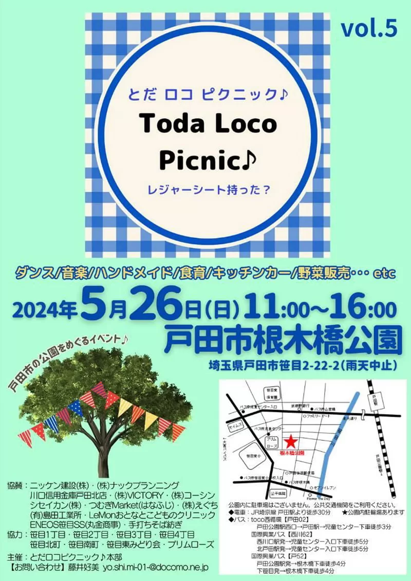 5月26日(日)、子どもたちに人気のスポット「戸田市立児童センタープリムローズ」の最寄りにある根木橋公園(この公園も人気!)で、とだロコピクニックが開催!5月最後の日曜日は笹目に集合♪ いつもの公園がこの日だけは食べたり飲んだり楽しんだり♪キッズも一緒の場合は、イベントとプリムローズ両方楽しめる一日になりそう♪