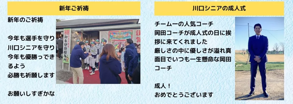 川口シニアの2026年がスタートしました。先ずはご祈祷、今年1年の安全と飛躍をお祈りしました。今年も変わらず、川口シニアらしさで1年間頑張ります。