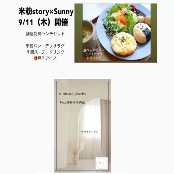 - 米粉storyさんによるランチセット(米粉パン・デリサラダ・季節のスープ・ドリンク)+豆乳アイスのスペシャルランチ代も含まれてます。