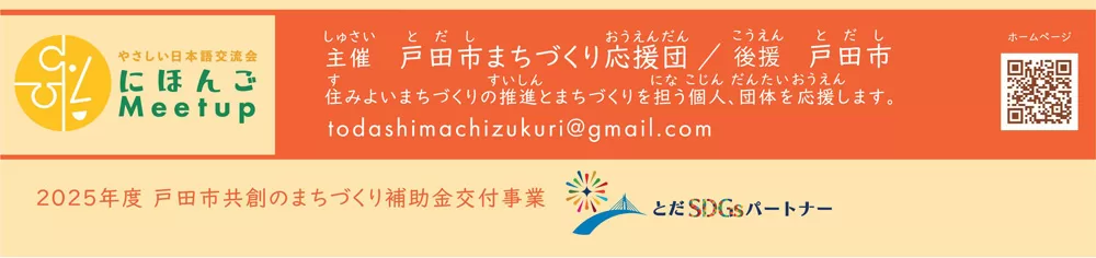 「やさしい日本語講座」では、難しい表現をやさしい言い方に変わる方法を学びます。「にほんご交流会」は、外国人の方が、戸田市内での仲間や居場所づくりを目的として、お茶やお菓子を食べながらのコミュニケーションを予定しています。