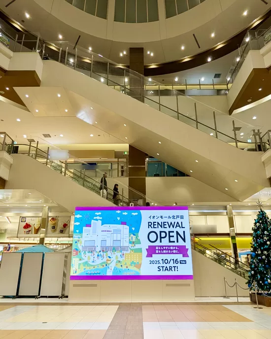 2025年10月に館内のリニューアルが行われ、現在も新しいテナントのオープンが続いている「イオンモール北戸田」。年末や冬休みを迎えるこの時期、お買い物先としてはもちろん、家族でのお出かけ先としても、改めて注目したいスポットです。今回は、リニューアル後の館内の様子と、年末年始に向けた過ごし方のヒントを、写真とともにご紹介します。