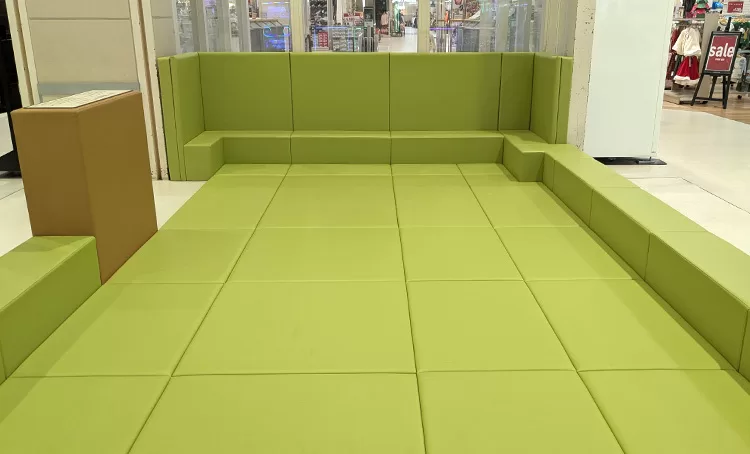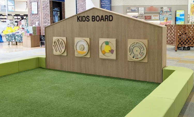 館内には、小さなお子さんが楽しめるスペースや、親子で一息つけるエリアが用意されていて、家族でのお出かけにも使いやすい造りになっています。買い物の合間に少し体を動かしたり、ベンチで休憩したりと、「歩き疲れたら、少し座ってひと休み」が自然にできるのも嬉しいポイントです。